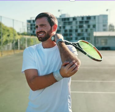 Je bent niet de enige. Wij zagen talloze fanatieke recreanten in de risicogroep (35-55 jaar) uitvallen met die vreselijke tennis- of golfarm.